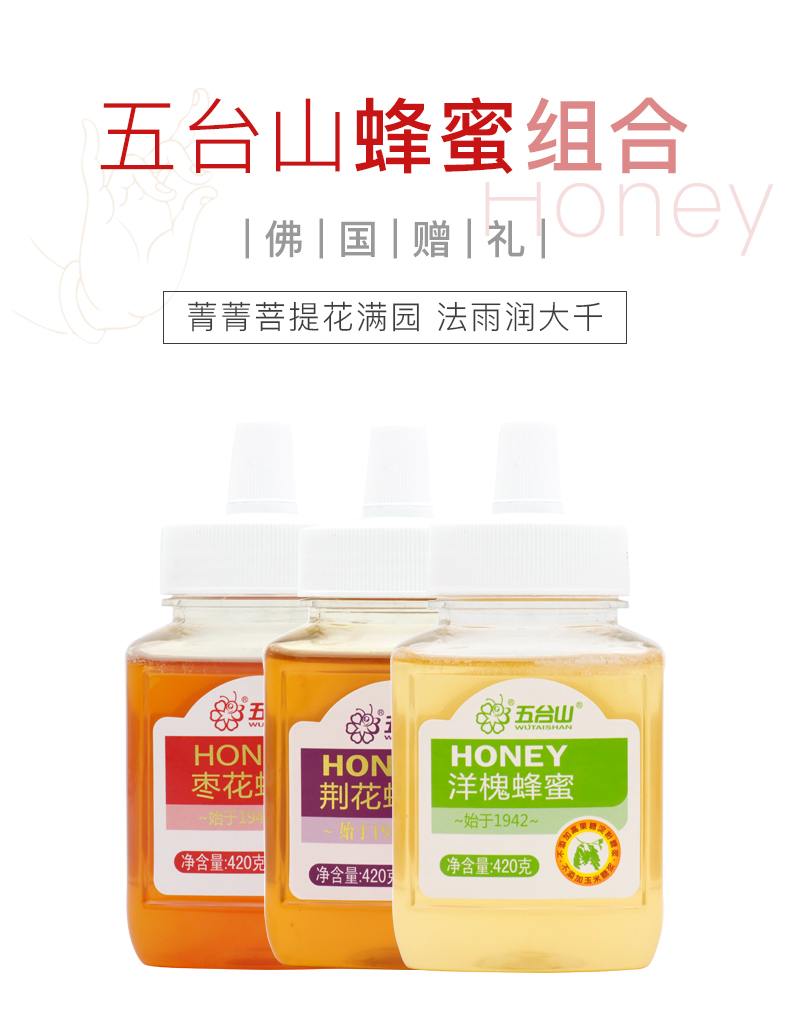 五臺山蜂蜜 棗花蜂蜜 洋槐花蜂蜜 荊花蜂蜜 420g*3瓶