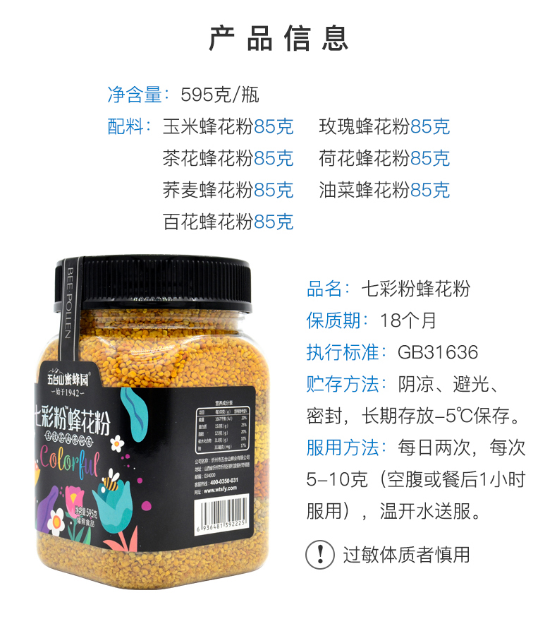 五臺山蜜蜂園七彩粉蜂花粉595g